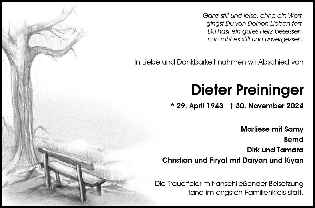 wir wünschen Ihnen für die kommende Zeit viel Kraft und dass es Ihnen gelingt, dankbar auf die positiven Erinnerungen zurückzublicken. Diese Gedenkseite möge Ihnen dabei helfen, Ihre Trauer zu teilen und das Andenken gemeinsam wachzuhalten.
