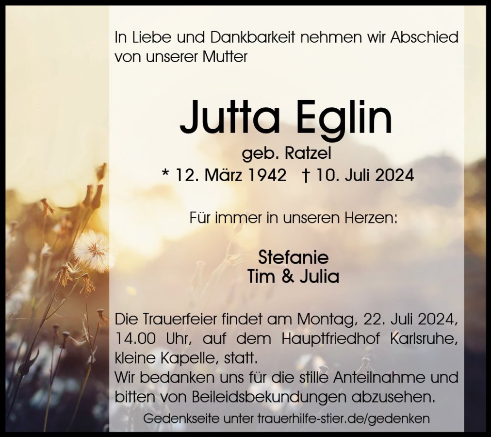 Jutta Eglin geb. Ratzel