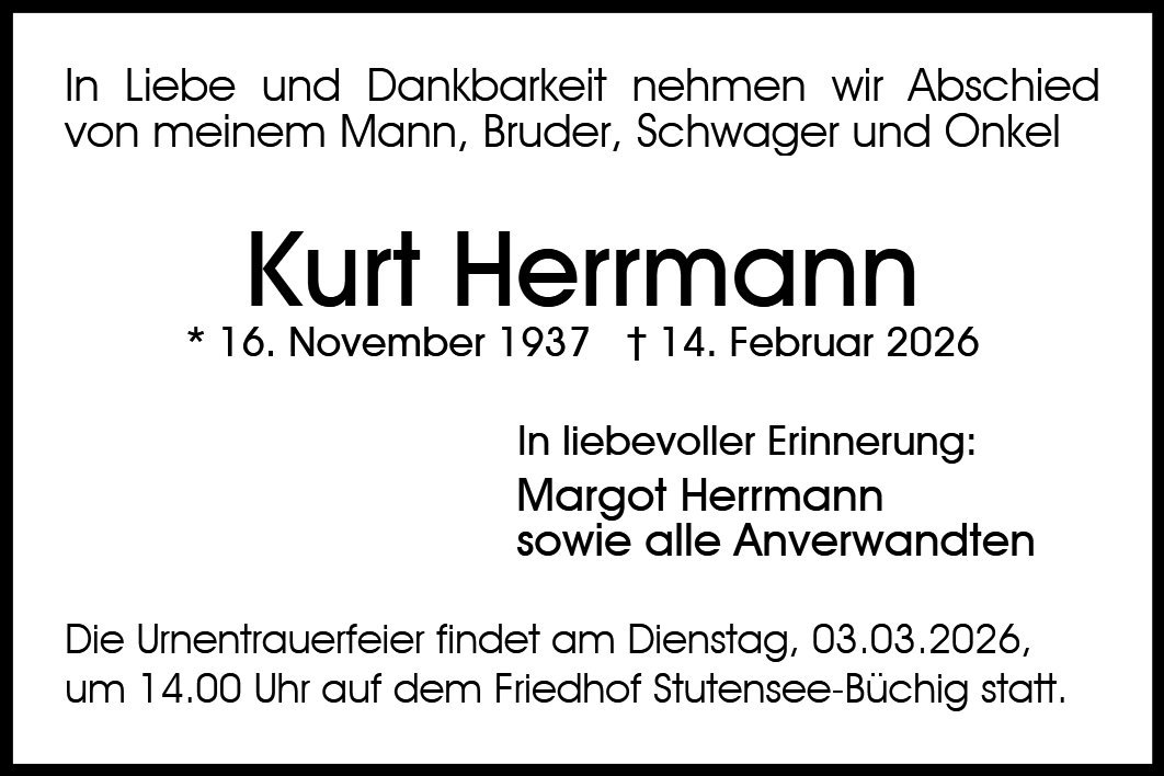 Lieber Kurt Wir hatten so lustige, schöne Begegnungen in den 20 Jahren der Nachbarschaft und Freundschaft, an die ich mich gerne mit einem Lächeln erinnere. Deine Kraft hat dich in den letzten Wochen verlassen und nun bist du nicht mehr da. Wir werden auf deine Margot aufpassen und für sie da sein. Ruhe nun in Frieden Ilona und Hans