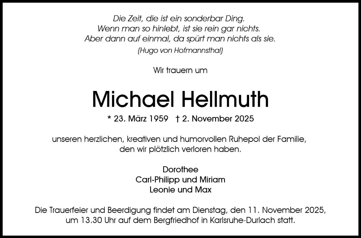die traurige Nachricht des Todes von Michael Hellmuth hat uns zutiefst bestürzt.