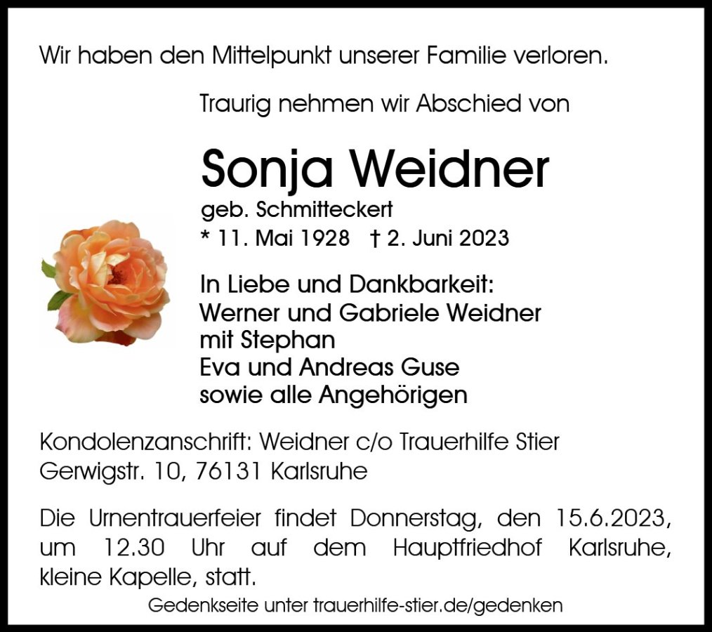 Sonja Weidner geb. Schmitteckert