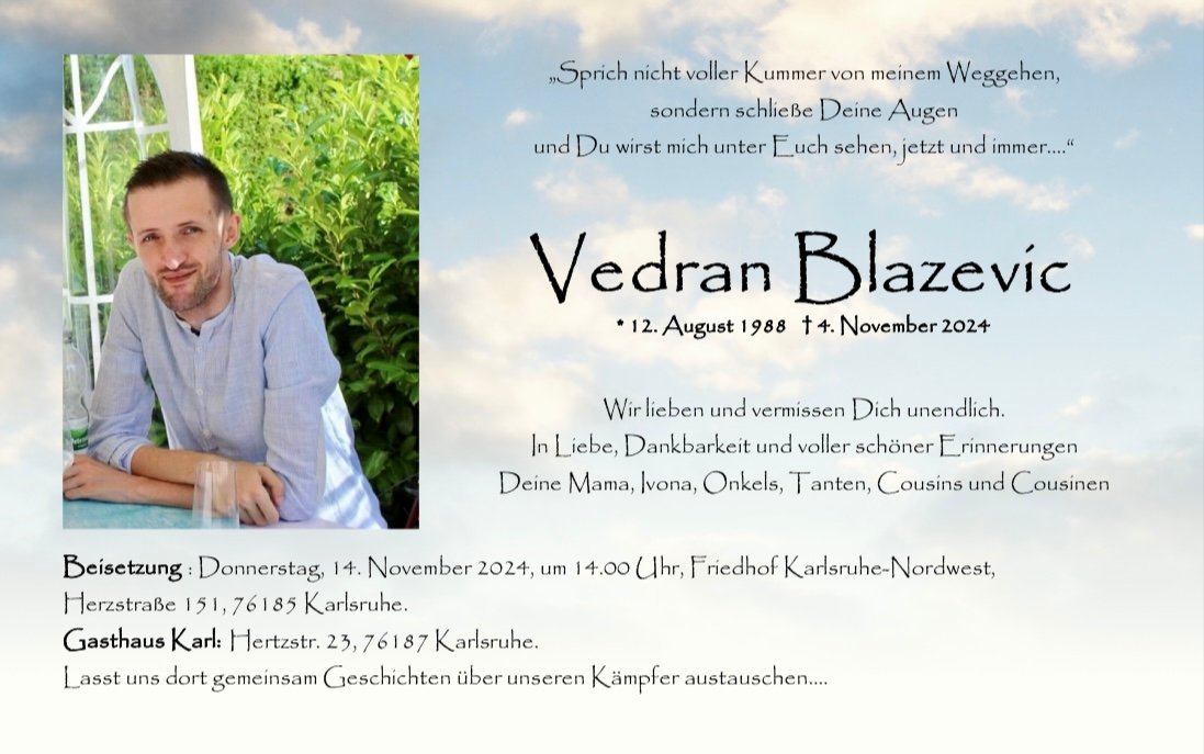 Es ist unbegreiflich. Ein Leben ohne dich unvorstellbar. Wir sind unendlich traurig und lieben dich über alles.