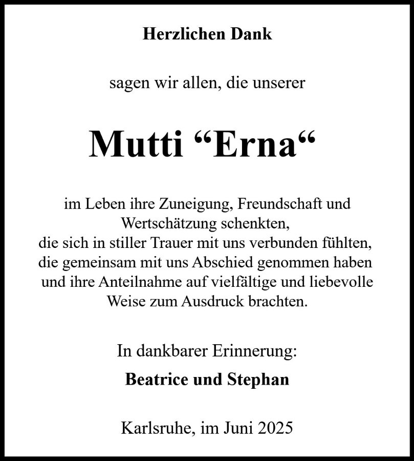 Seit 12 Jahren wohnen wir nicht mehr in Karlsruhe, daher hatten wir kaum noch Kontakt zu deiner Mutter. Meine Schwiegermutter Ingrid in Krefeld hatte aber weiterhin regelmäßigen Telefonkontakt.
